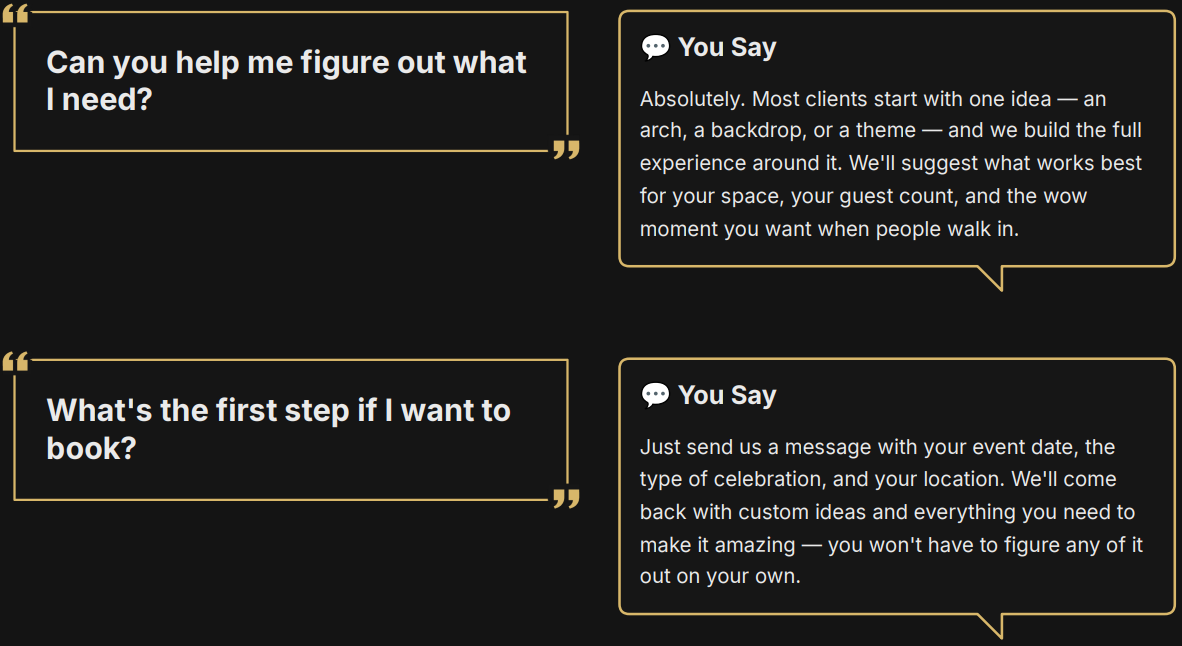 A great setup does more than decorate a room. It changes the energy, creates a photo moment, and makes the whole event feel special.