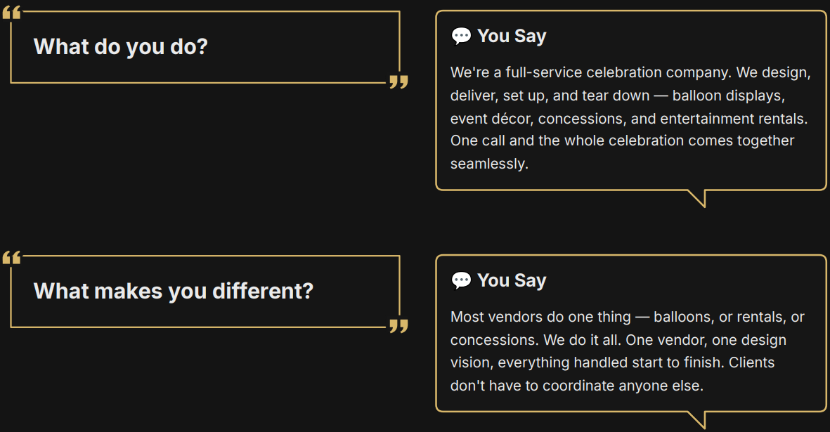 One of our favorite moments is when the room transforms and guests walk in and say “wow.” We design, deliver, set up, and remove balloon décor, displays, and event fun so hosts can enjoy the celebration without the stress.
