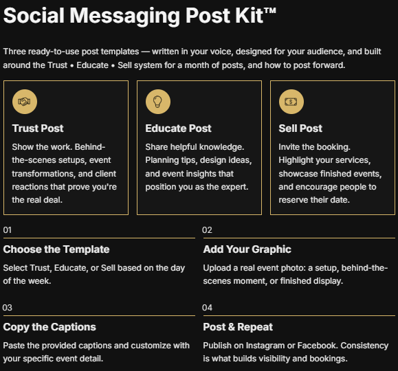 Staying visible on social media does not have to be complicated. The Social Messaging Post Kit gives you a simple system to stay consistent without it taking over your schedule.